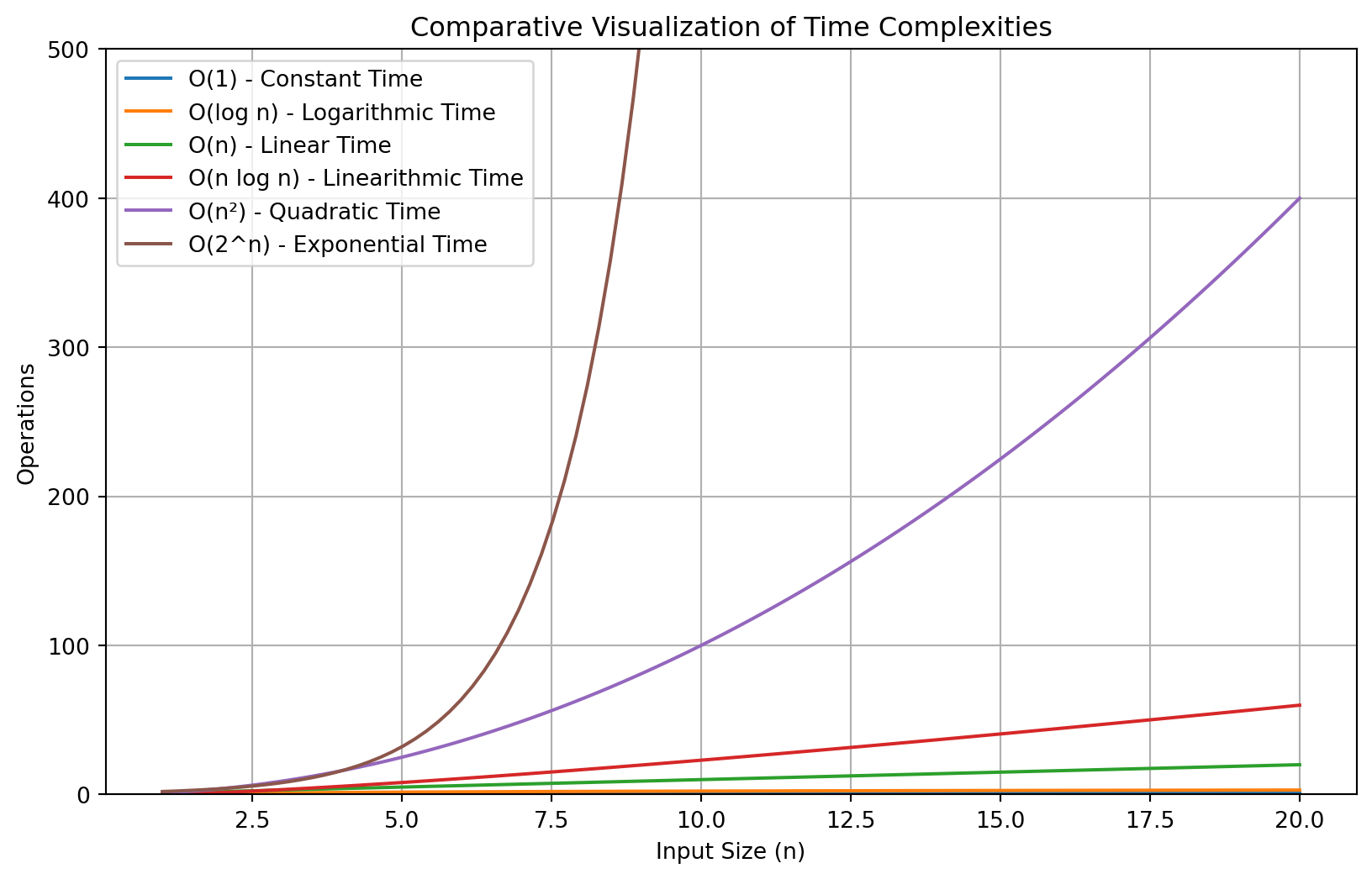 | \(O(n!)\) | Factorial Time | Runtime grows factorially with input size | Generating all permutations of a list | Extremely Steep Curve |